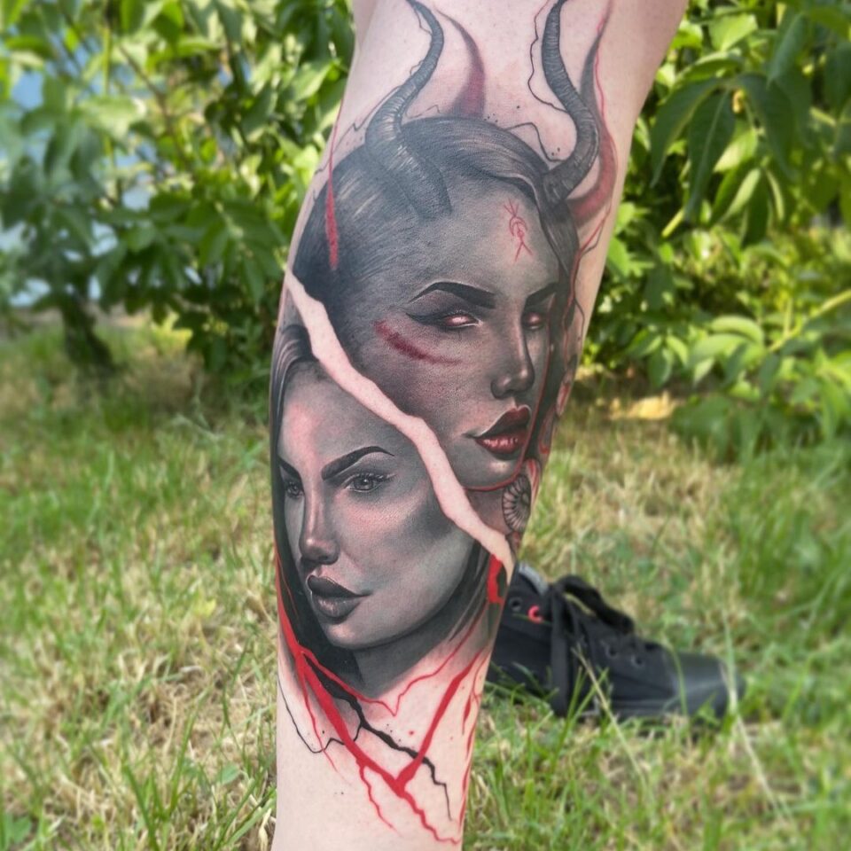 Tetování portréty symbol ochrany na lýtko
