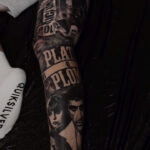 Tetování portréty z filmů a pohádek, nápisy na noze