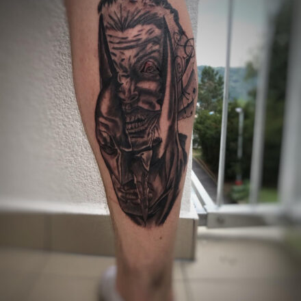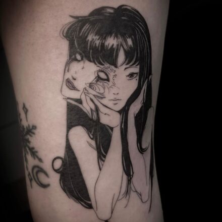 Tetování portréty z filmů a pohádek Uzumaki na stehně