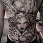 Tetování portréty, ženy, muerte, lebka na hrudi