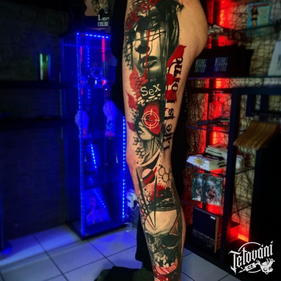Tetování portréty, ženy, nápisy, lebka, tvary na nohu