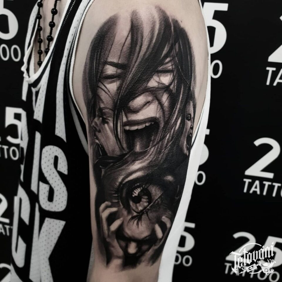 Tetování portréty, ženy, oko na rameno