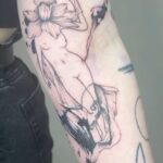 Tetování postava ženy a květina na předloktí