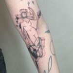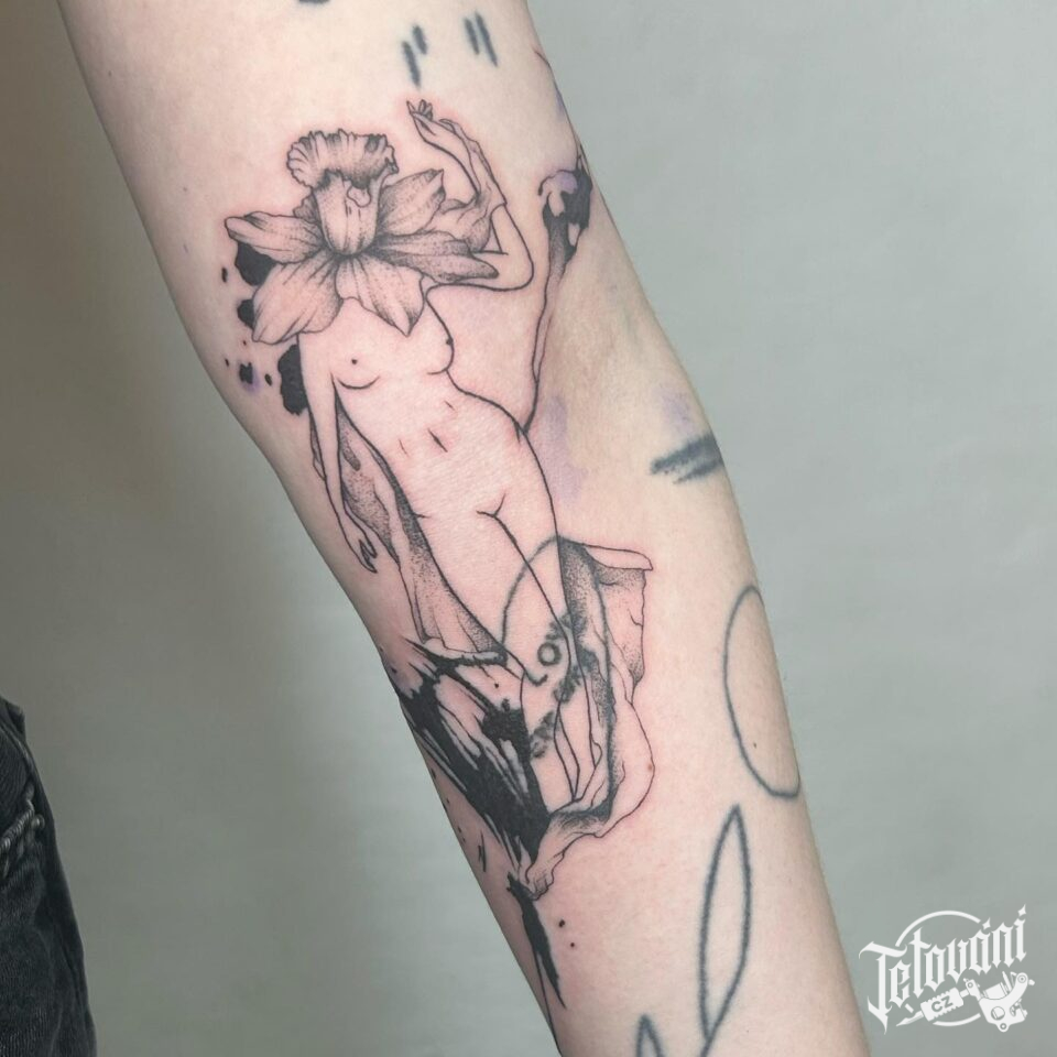 Tetování postava ženy a květina na předloktí