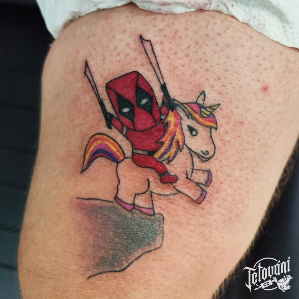 Tetování postavička a jednorožec na rameno