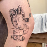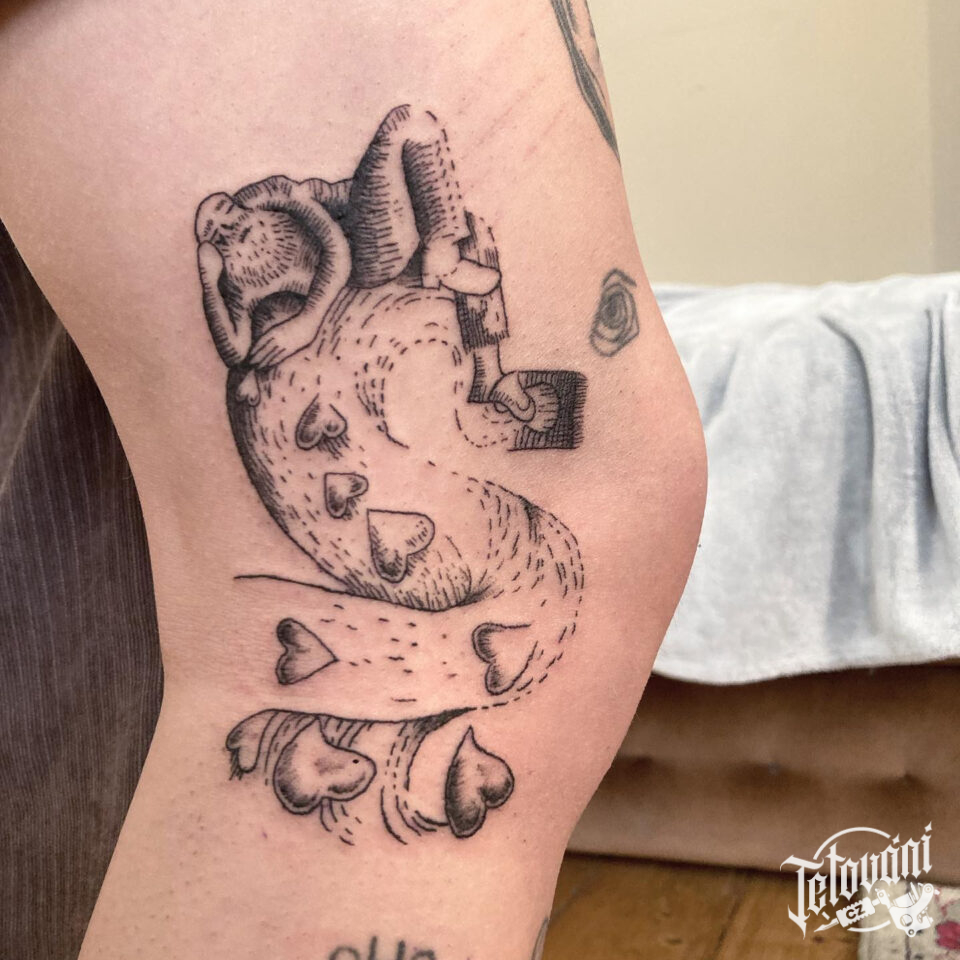 Tetování postavička a srdíčka na koleni