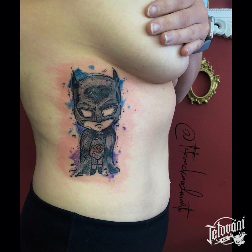 Tetování postavička Batman z filmů a pohádek na žebra