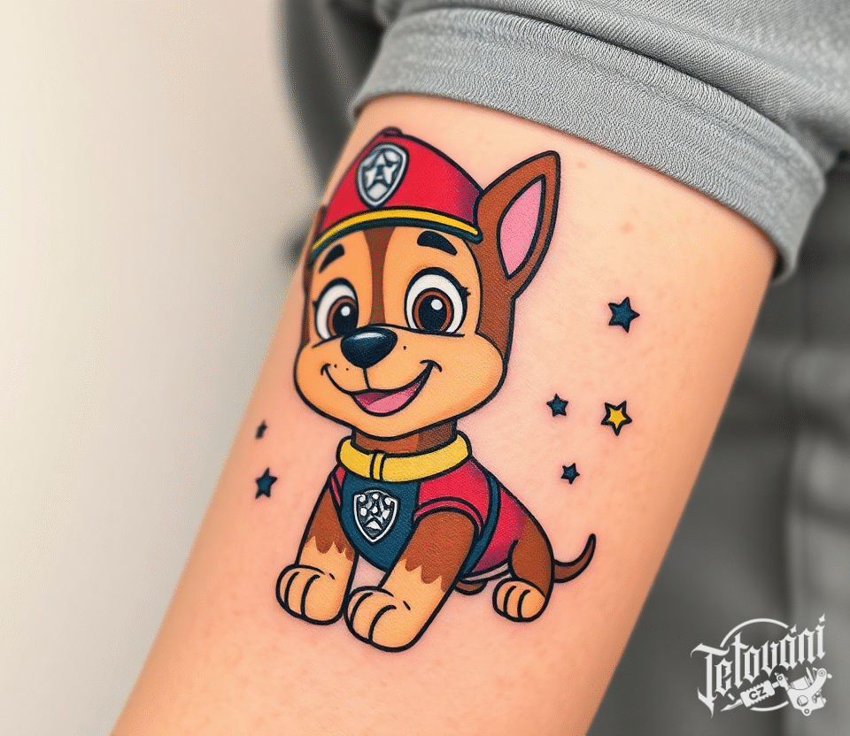 Tetování postavička Chase z filmů a pohádek Tlapková patrola na předloktí