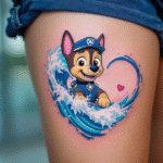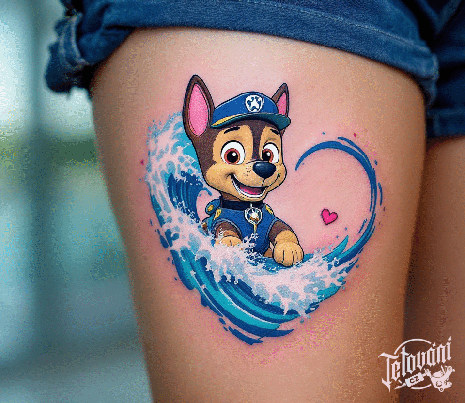 Tetování postavička Chase z filmů a pohádek Tlapková patrola ve vodě na stehno