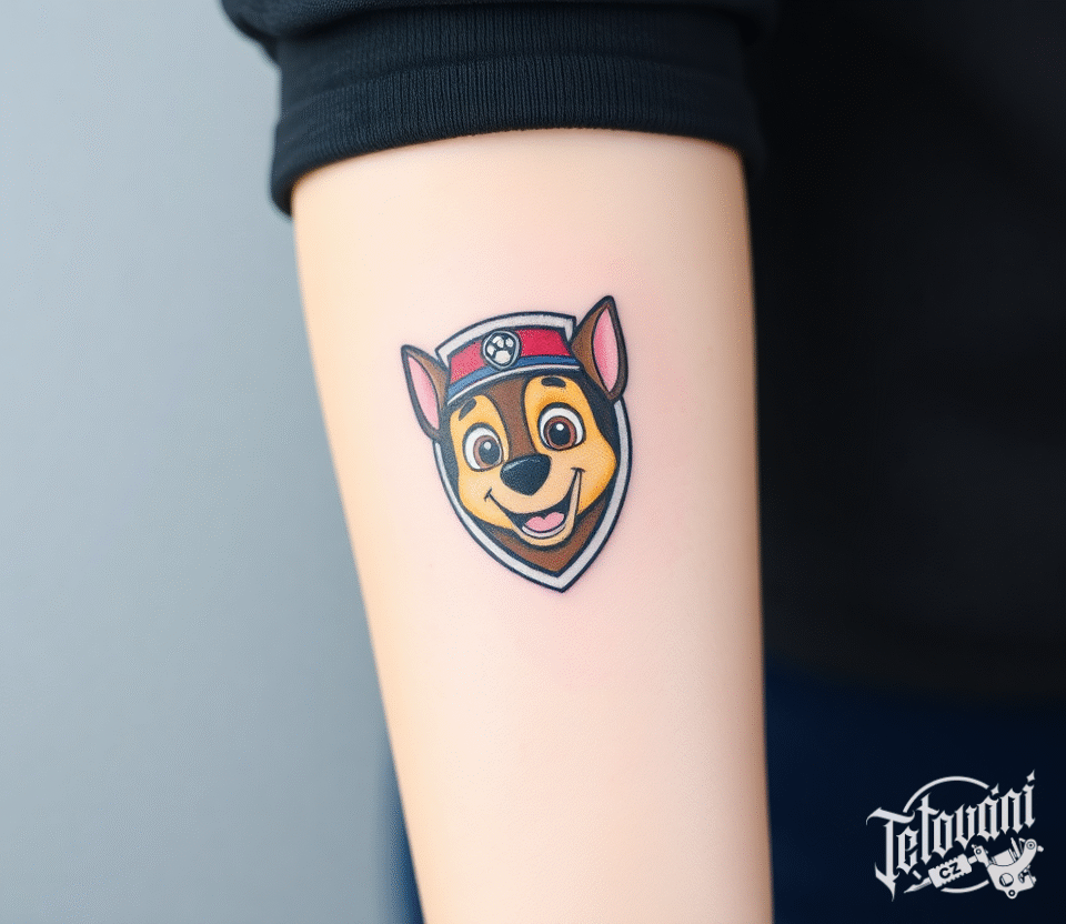 Tetování postavička Chase z pohádky Tlapková patrola na předloktí