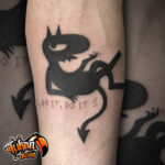 Tetování postavička ďáblík z filmů a pohádek na předloktí