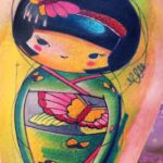 Tetování postavička gejši na stehně
