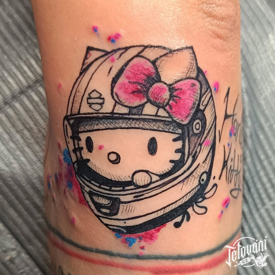 Tetování postavička Hello Kitty na loket