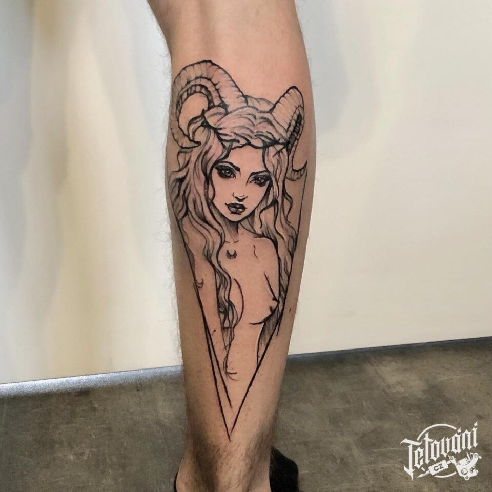 Tetování postavička Hentai, ďábel na lýtko