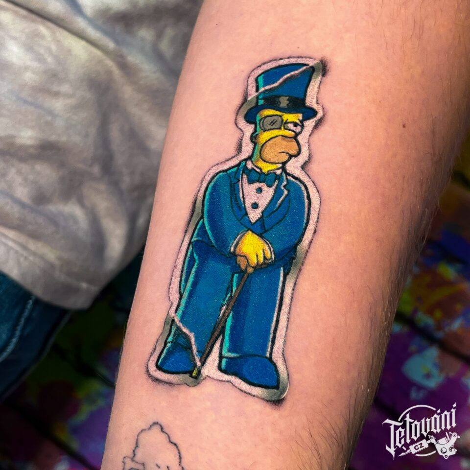 Tetování postavička Homer z filmů a pohádek na předloktí