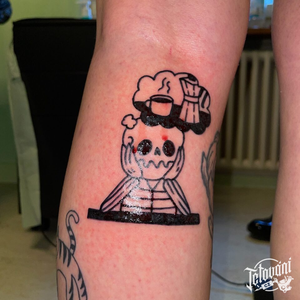 Tetování postavička kostlivec na lýtku