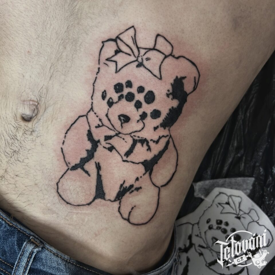 Tetování postavička, medvídek na břicho