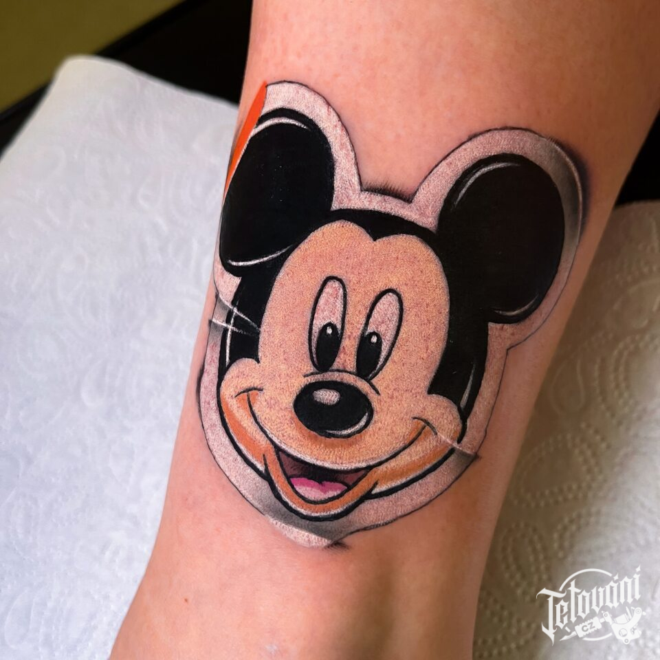 Tetování postavička Mickey Mouse z filmů a pohádek Disney na lýtko