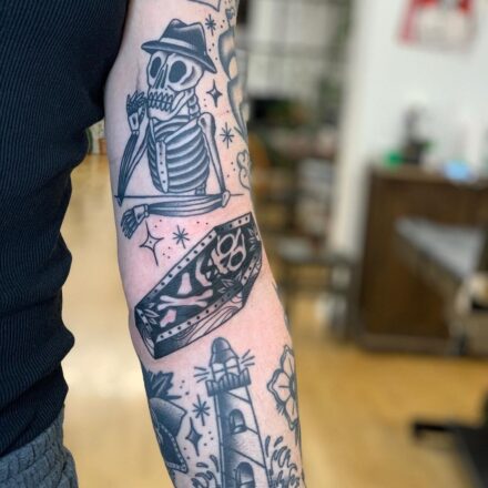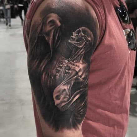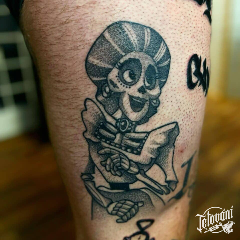 Tetování postavička Muerte z filmů a pohádek na bok stehna
