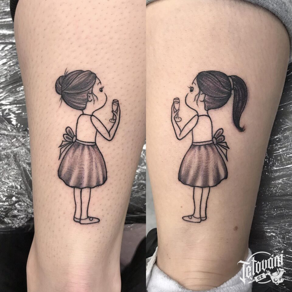 Tetování postavička na lýtku
