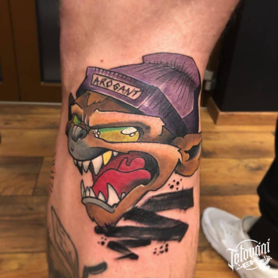 Tetování postavička na lýtku