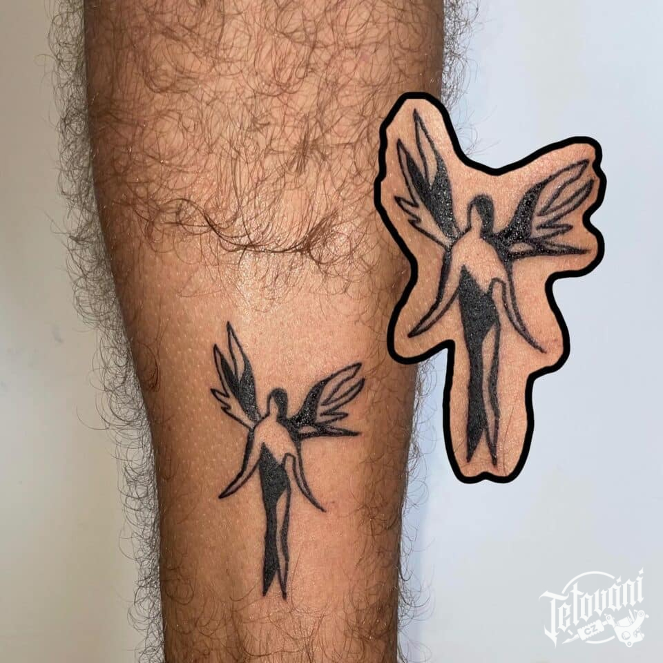 Tetování postavička na lýtku