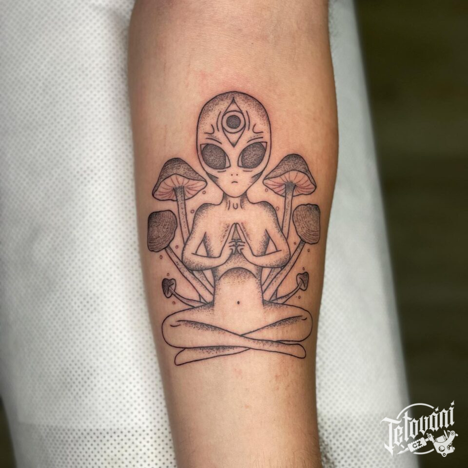 Tetování postavička na předloktí