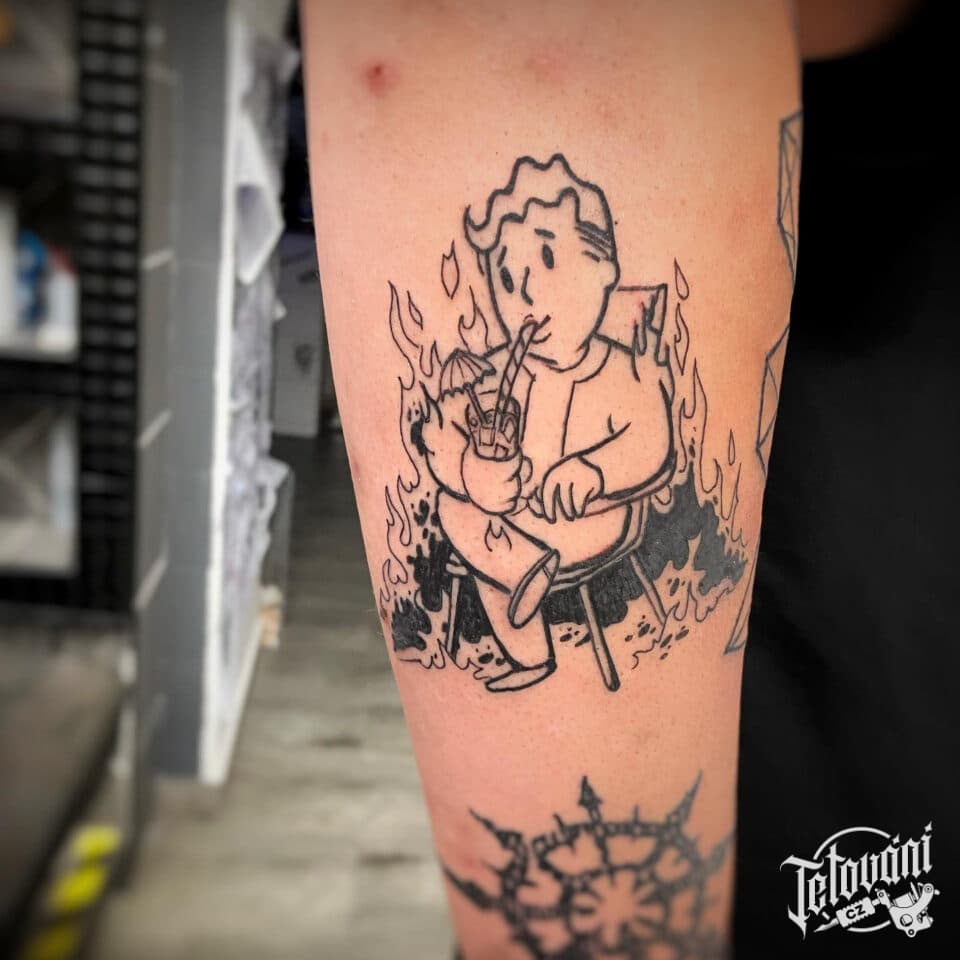 Tetování postavička na předloktí
