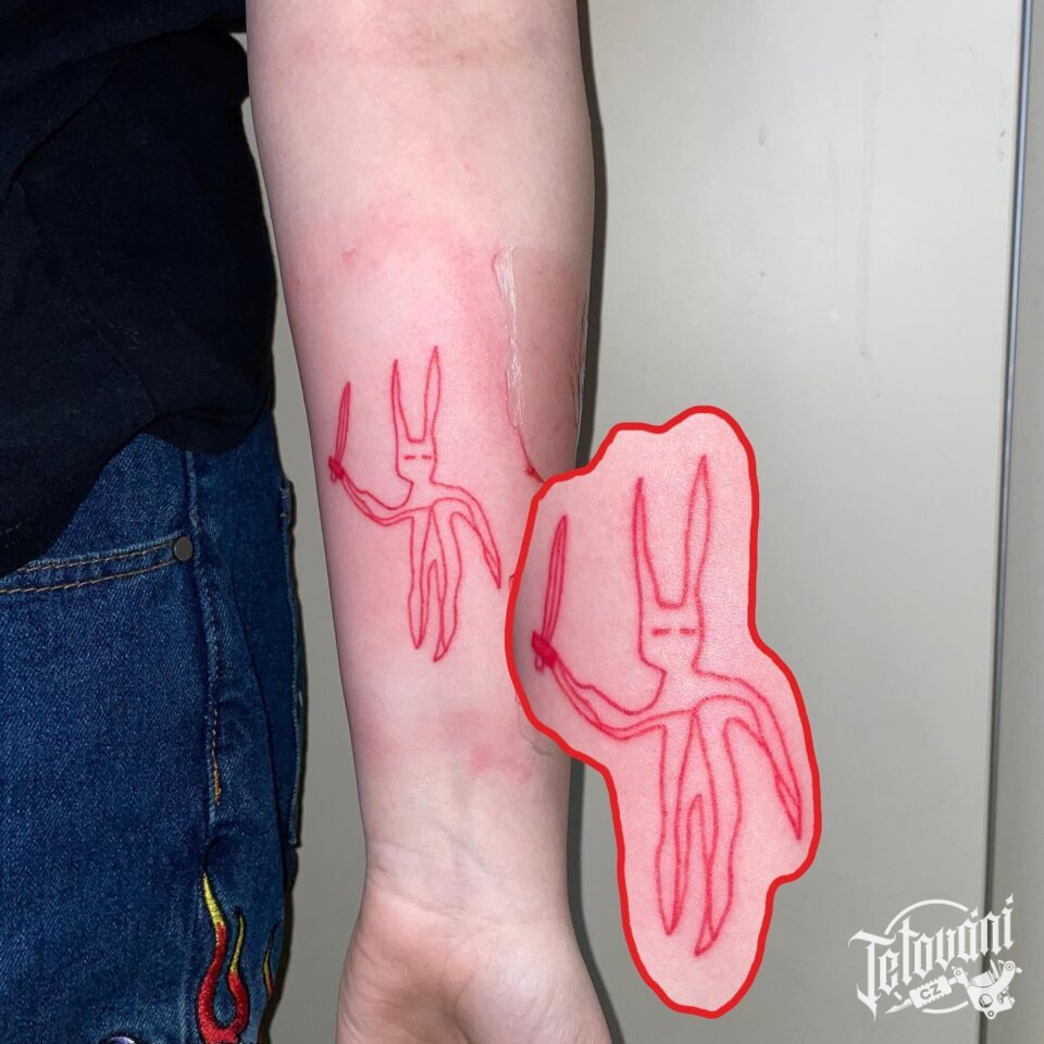 Tetování postavička na předloktí