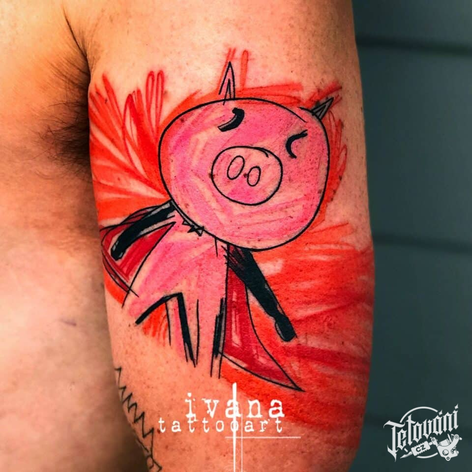 Tetování postavička, prasátko na paži