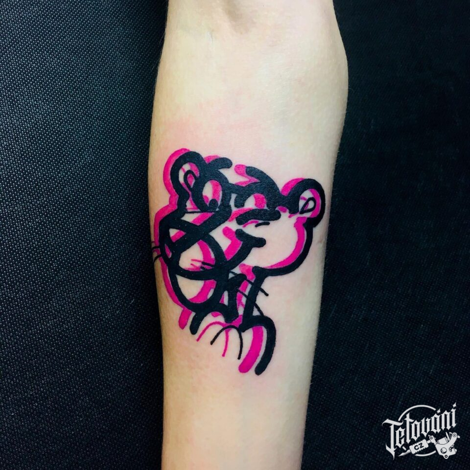 Tetování postavička Růžový panter z filmů a pohádek na předloktí