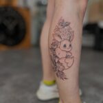 Tetování postavička s květy na lýtko