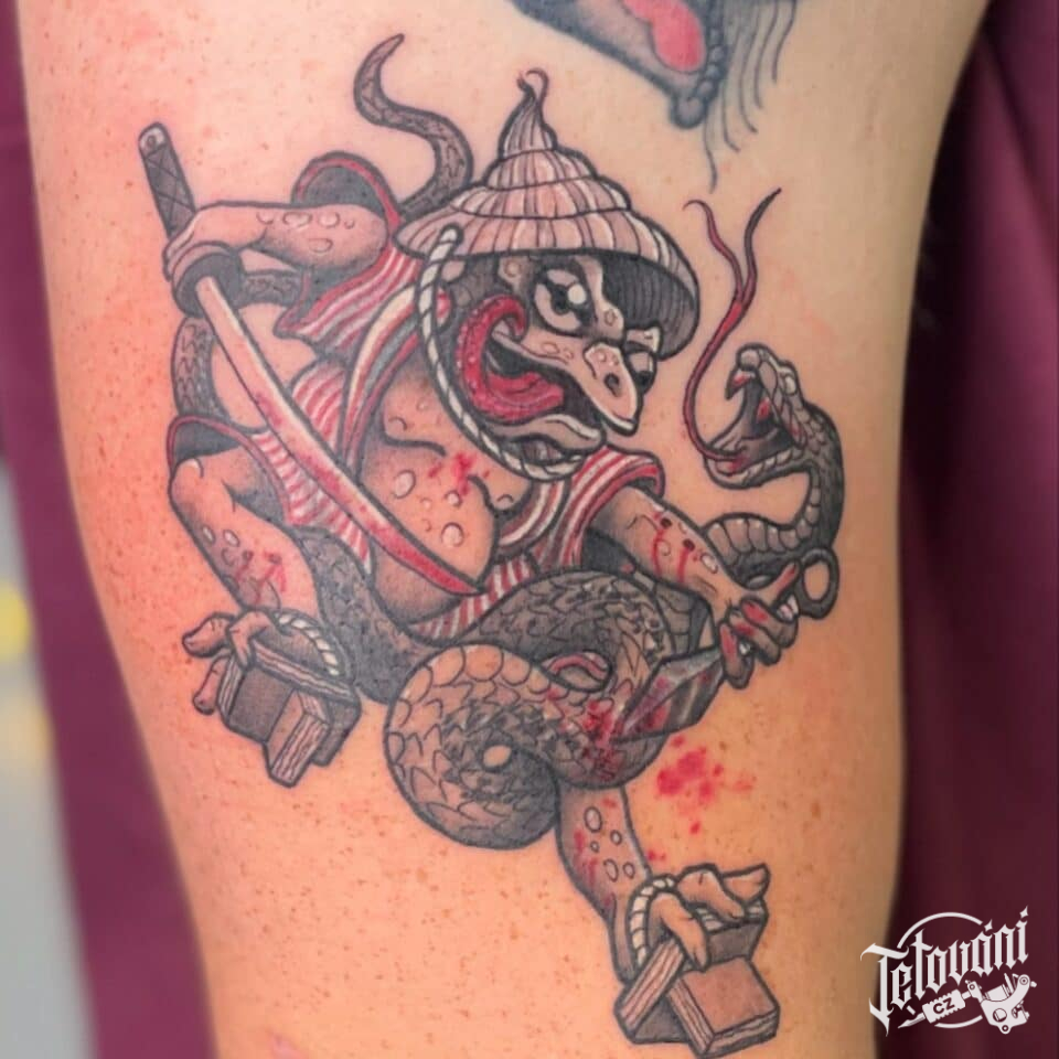 Tetování postavička samuraje na paži