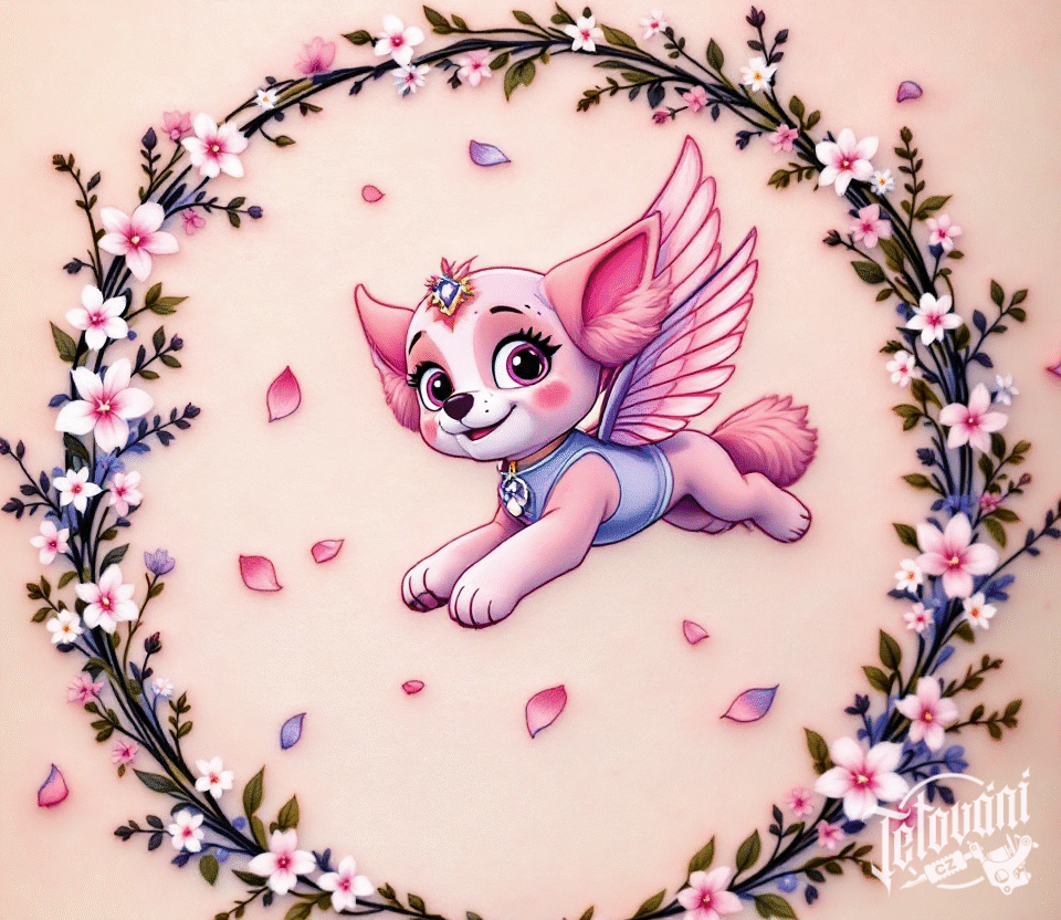 Tetování postavička Sky z filmů a pohádek Tlapková patrola na předloktí