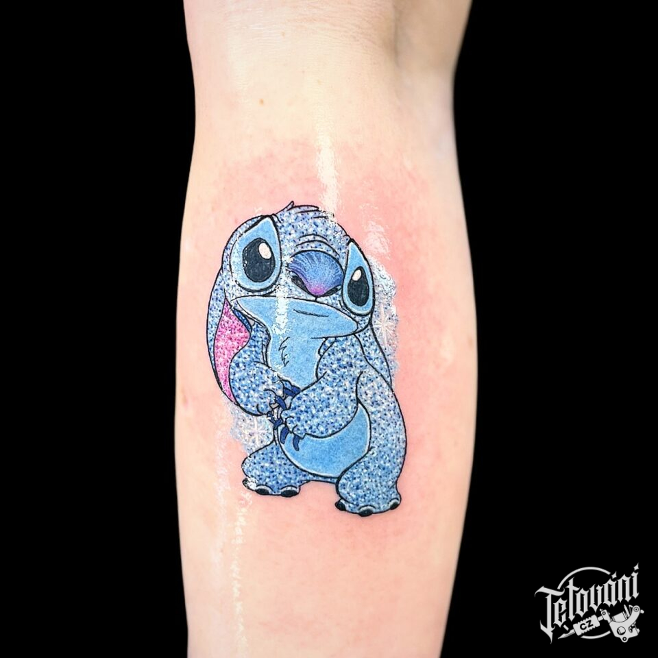 Tetování postavička Stich z filmů a pohádek na lýtko