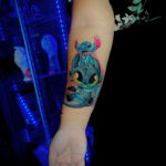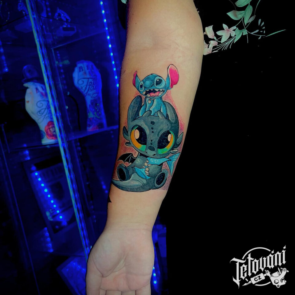 Tetování postavička Stitch z filmů a pohádek anime, Disney na předloktí