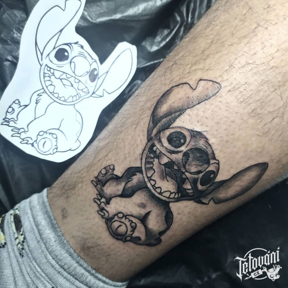 Tetování postavička z anime filmů a pohádek od Disney Stitch na lýtko