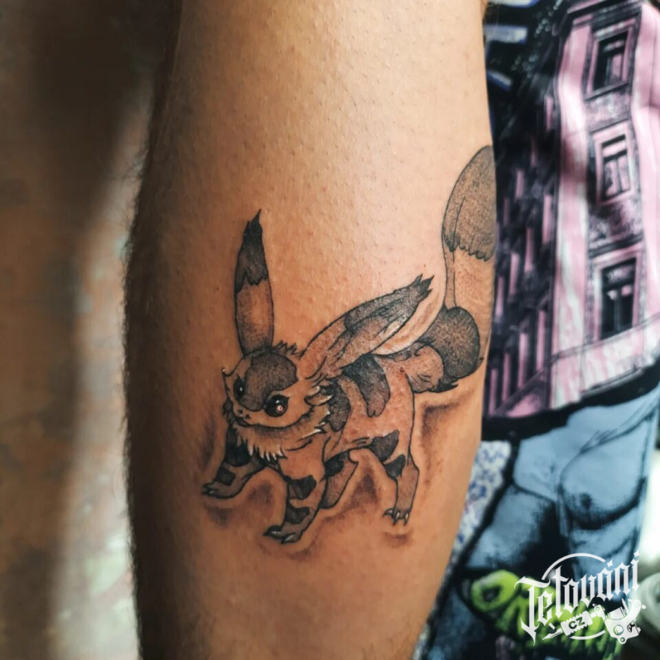 Tetování postavička z anime filmů a pohádek Pokemon na lýtko