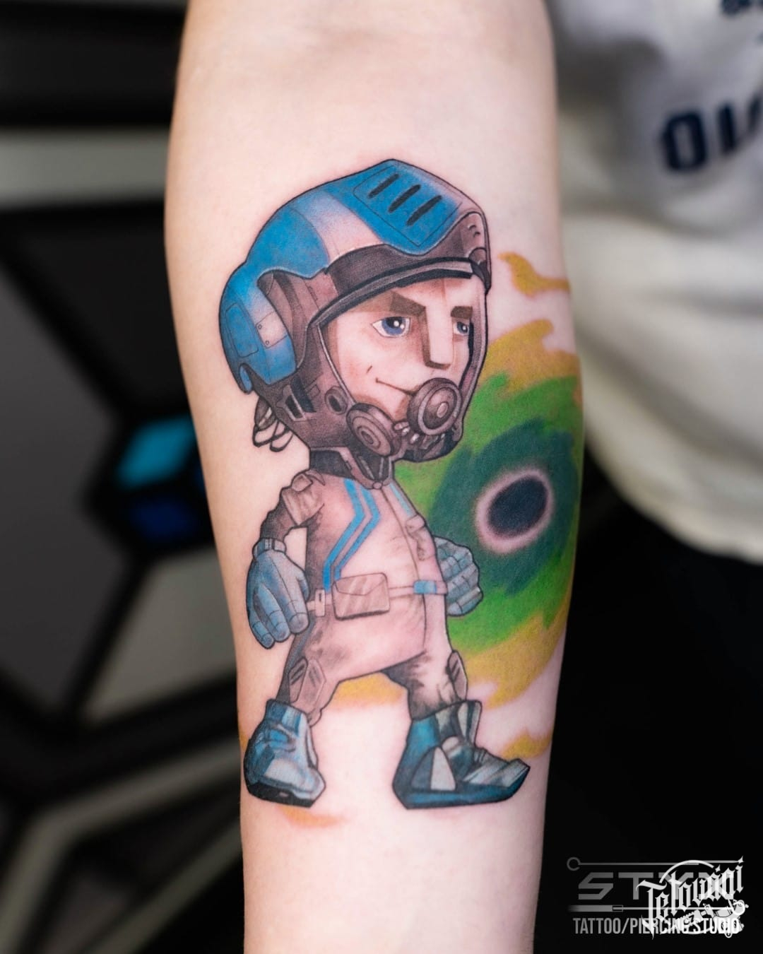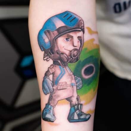 Tetování postavička z filmů a pohádek a znaky a symboly na lýtko