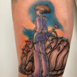 Tetování postavička z filmů a pohádek anime na lýtku