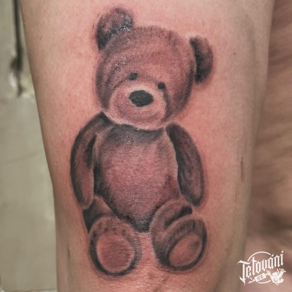 Tetování postavička z filmů a pohádek Medvídek na stehno