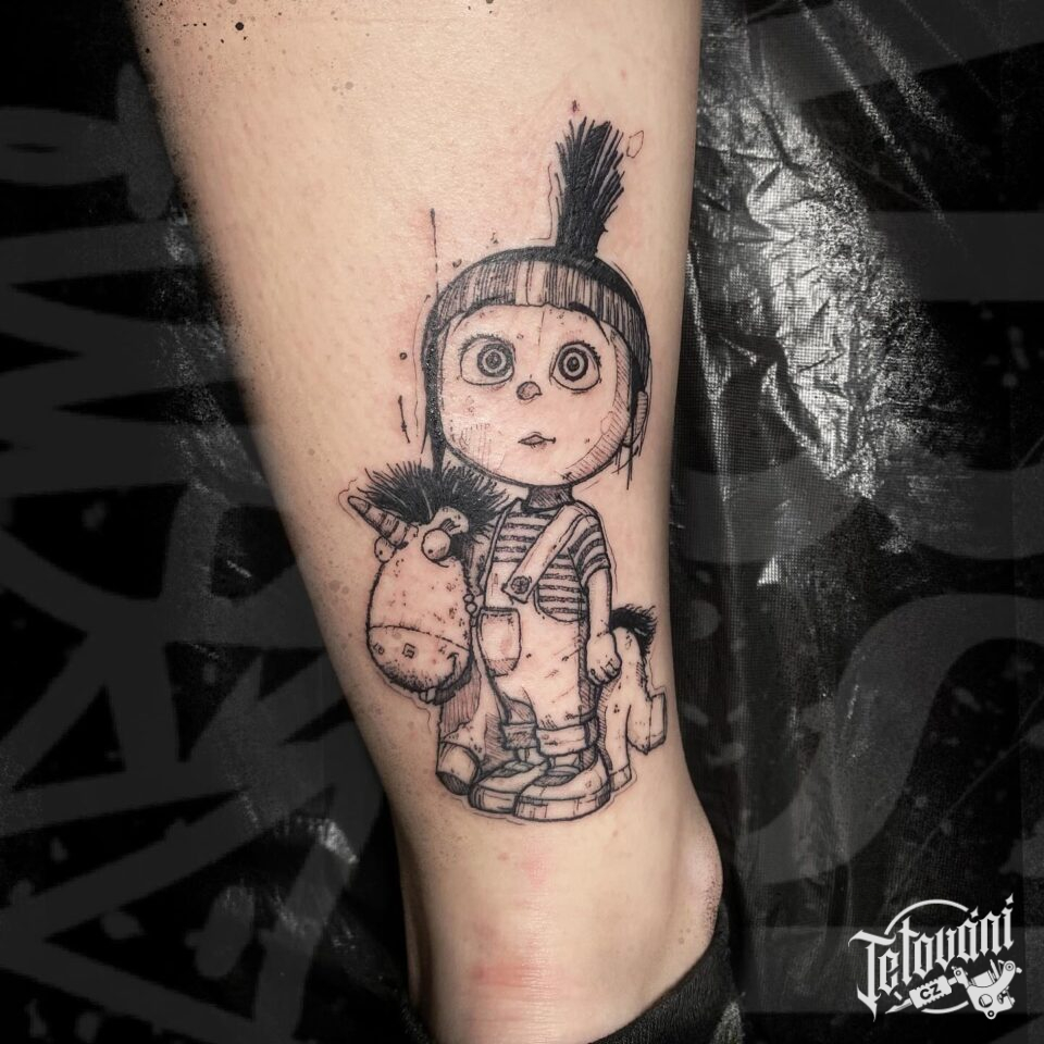 Tetování postavička z filmů a pohádek na lýtku