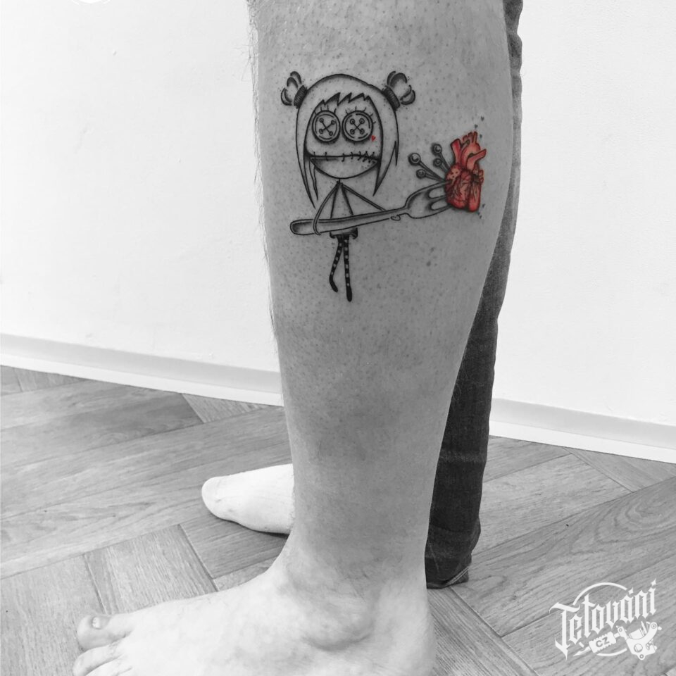 Tetování postavička z filmů a pohádek na lýtku