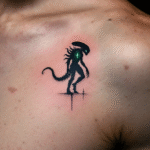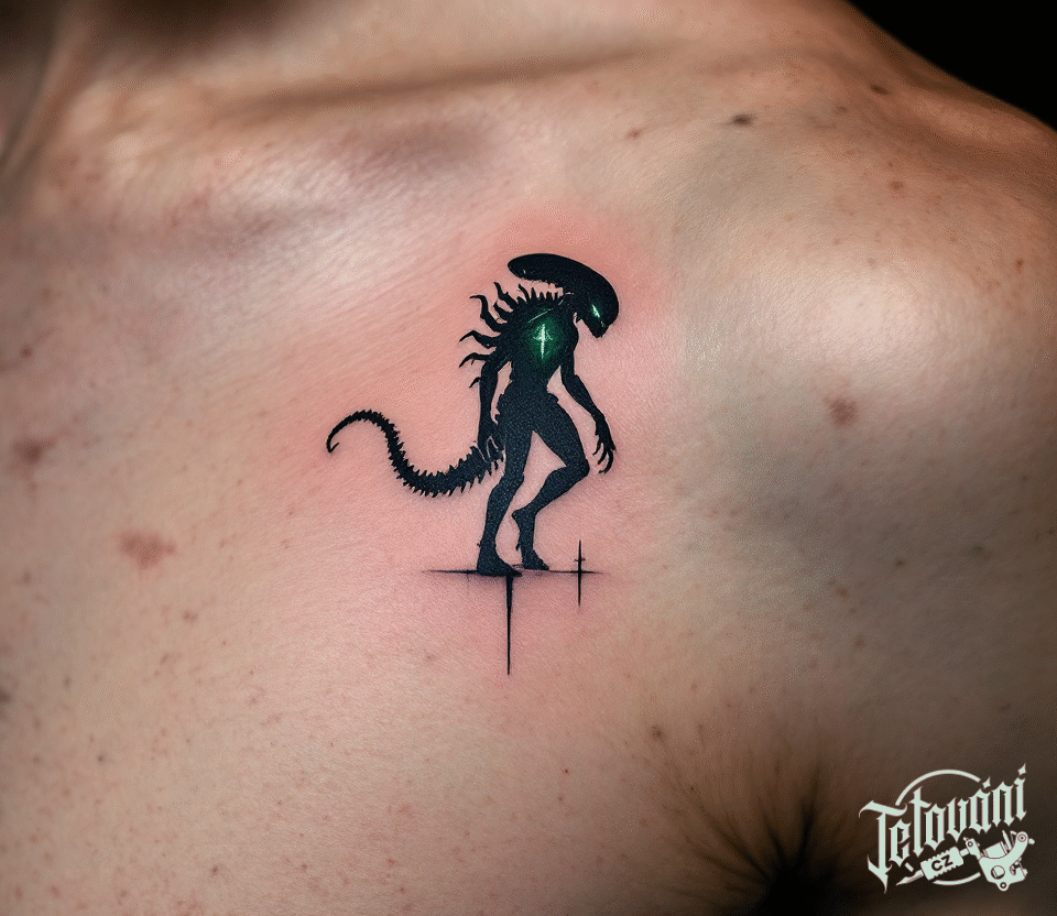Tetování postavička z filmů a pohádek, nadpřirozené bytosti, vetřelec pod klíční kostí