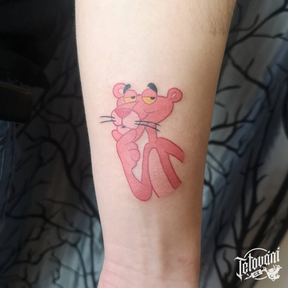 Tetování postavička z filmů a pohádek Růžový Panter na předloktí