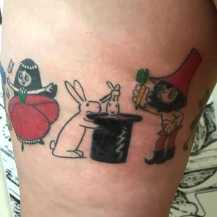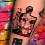 Tetování postavička z filmů a pohádek Saw, puzzle na holeň
