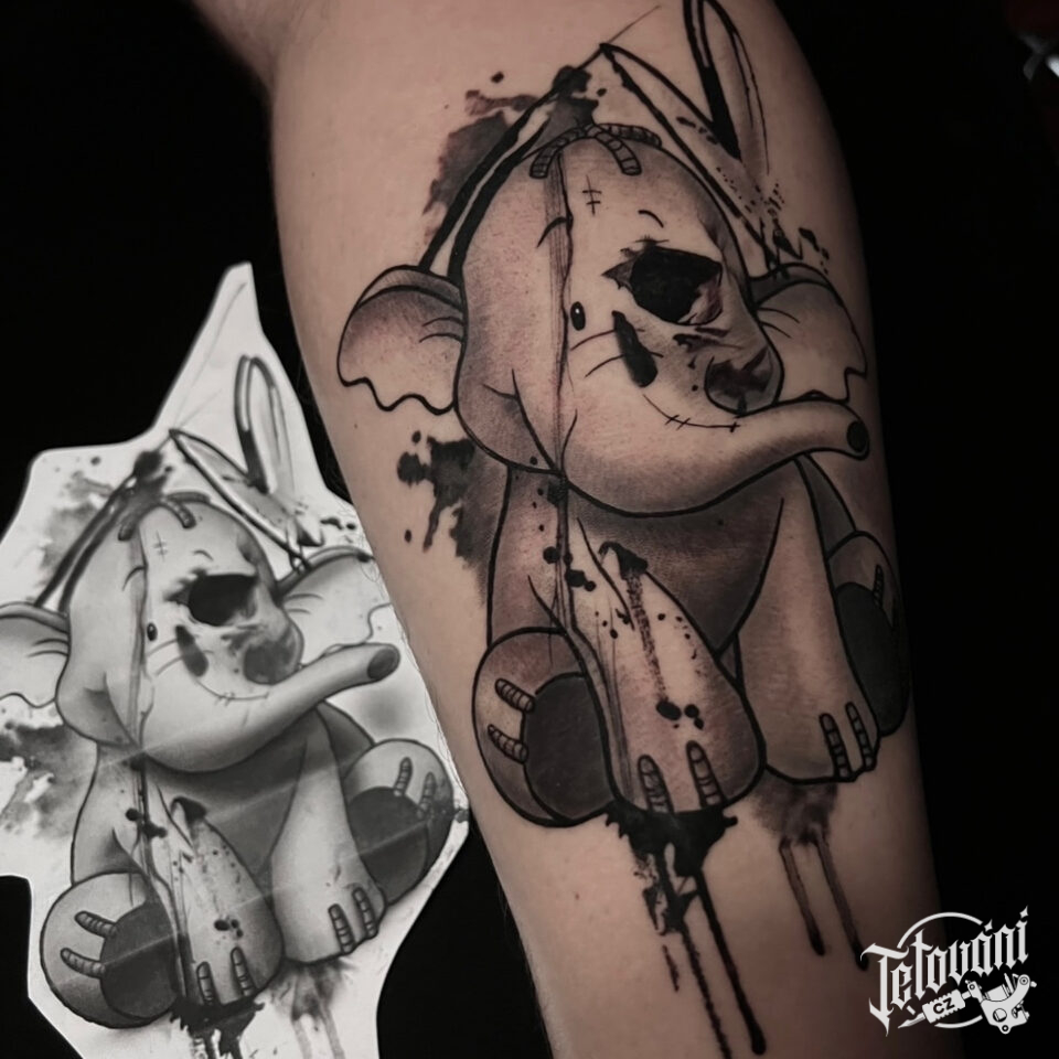 Tetování postavička z filmů a pohádek slon na lýtko