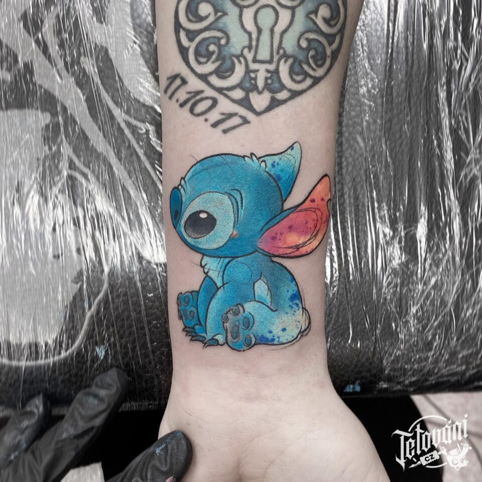 Tetování postavička z filmů a pohádek Stitch na zápěstí