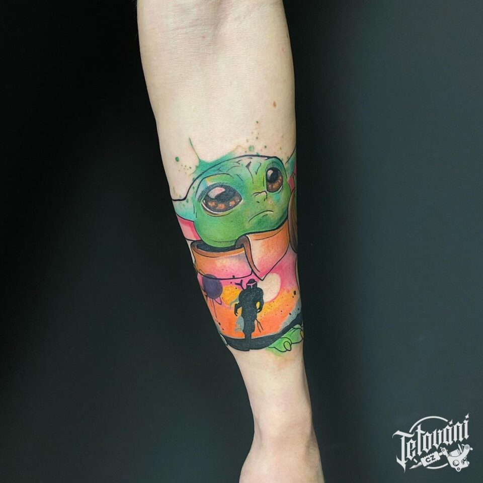Tetování postavička z filmů a pohádek, Yoda na předloktí