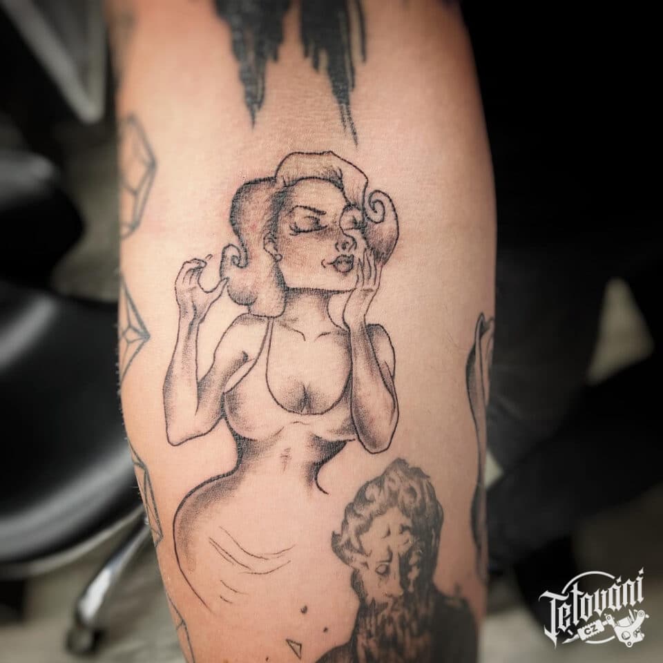 Tetování postavička ženy na předloktí